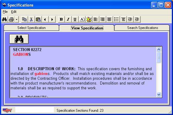 displays the specifications related to a cost item in the estimate