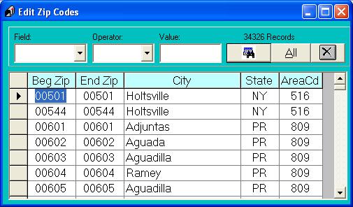 The zip code lookup feature allows the user to enter a zip code or the city name to look up the corresponding data. | ||||||||