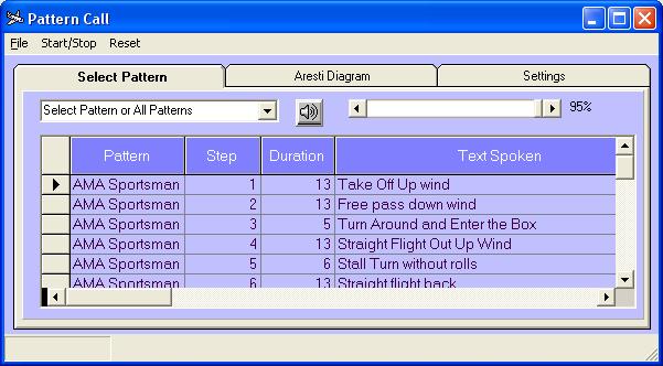 Pattern Calling Software. The software will announce the pattern and show the aresti symbol as the pattern is flown in the simulator. It is possible to speed up and slow down the timing by a given percentage. An unlimited number of patterns can be entered and updated. This update includes many improvements to the RC Timer to include transparent forms and a larger timer. |
